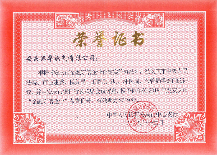 安慶港華再次榮獲“金融守信企業(yè)”稱號