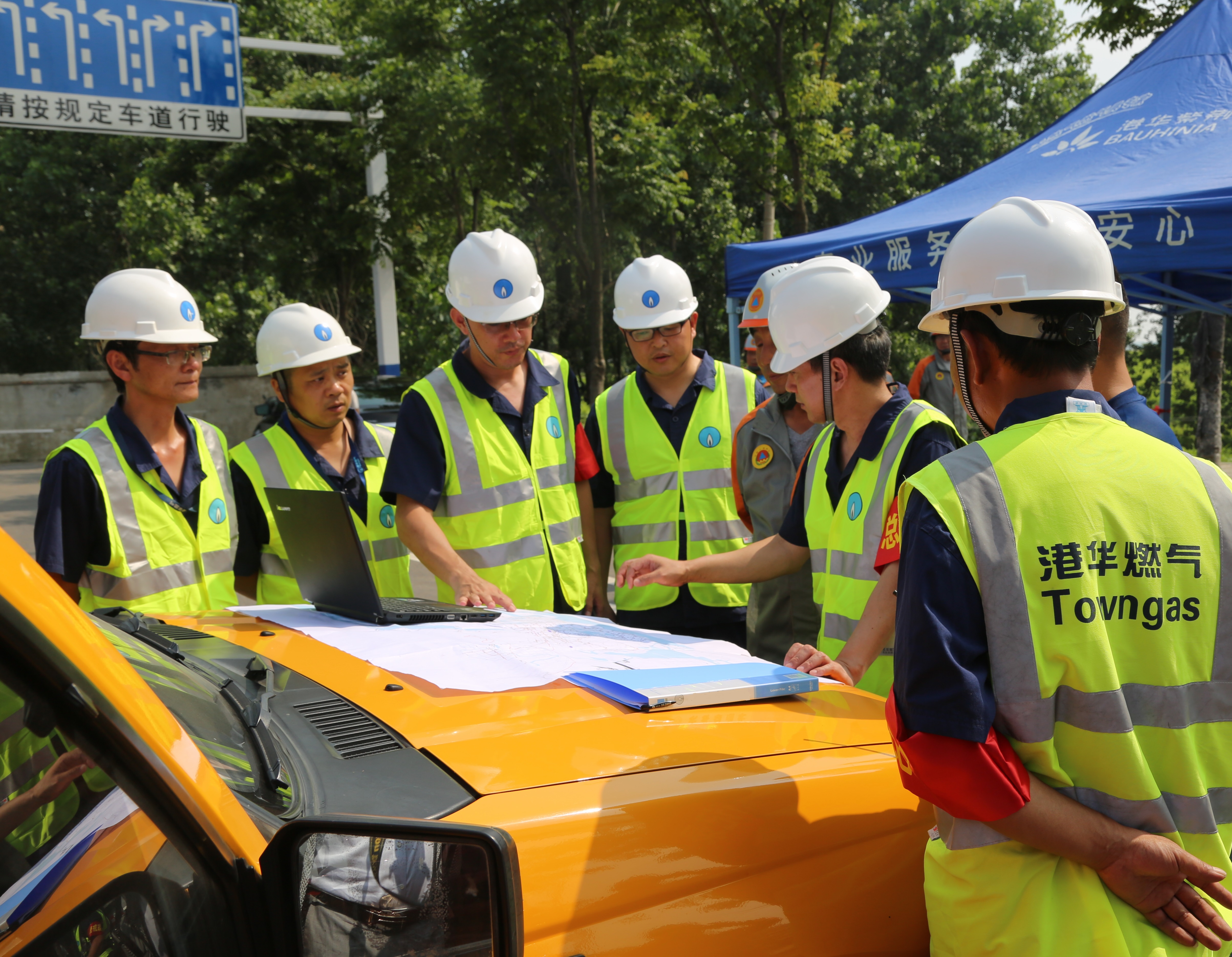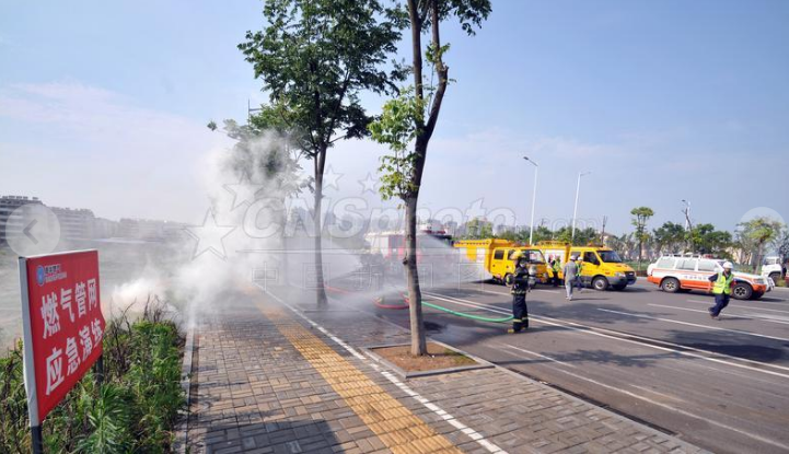 15時(shí)演習(xí)正式開始,接到報(bào)警后,消防、交警、港華及人防搶險(xiǎn)人員于10分鐘內(nèi)先后趕至現(xiàn)場(chǎng),消防人員立即對(duì)泄漏區(qū)域進(jìn)行滅火及水霧稀釋。交警人員對(duì)泄漏區(qū)域路段進(jìn)行交通封閉。市人防協(xié)同消防、交警、港華燃?xì)鈱I(yè)搶險(xiǎn)隊(duì)設(shè)立現(xiàn)場(chǎng)聯(lián)合搶險(xiǎn)指揮部,迅速組織人員對(duì)現(xiàn)場(chǎng)進(jìn)行緊急疏散、警示警戒、交通導(dǎo)行、燃?xì)鉂舛葯z測(cè)等一系列應(yīng)急處置措施。在初步控制事發(fā)現(xiàn)場(chǎng)后,經(jīng)現(xiàn)場(chǎng)指揮部研判,決定關(guān)閉潛江路地下燃?xì)膺M(jìn)氣閥門并使用防爆風(fēng)機(jī)加速燃?xì)鉂舛鹊南♂尅=?jīng)過有效處置,現(xiàn)場(chǎng)的燃?xì)庑孤┑玫娇刂疲苓吙諝庵械娜細(xì)鉂舛戎饾u將為0%PPM。15時(shí)35分,搶修人員進(jìn)入管道受損點(diǎn),對(duì)受損的PE200燃?xì)夤艿肋M(jìn)行修復(fù)。經(jīng)過24分鐘的緊張搶修作業(yè),成功完成管道修復(fù)。16時(shí),指揮部下令打開燃?xì)獾叵鹿芫W(wǎng)進(jìn)氣閥,恢復(fù)燃?xì)夤?yīng)。16時(shí)05分,經(jīng)檢測(cè)修復(fù)點(diǎn)無燃?xì)鈹?shù)值,安慶港華迅速組織客服及市務(wù)部相關(guān)人員進(jìn)行用戶端的恢復(fù)供氣。16時(shí)20分,演習(xí)圓滿結(jié)束,現(xiàn)場(chǎng)指揮部對(duì)演練進(jìn)行指導(dǎo)點(diǎn)評(píng),而后,參演人員快速恢復(fù)現(xiàn)場(chǎng)、有序撤離。