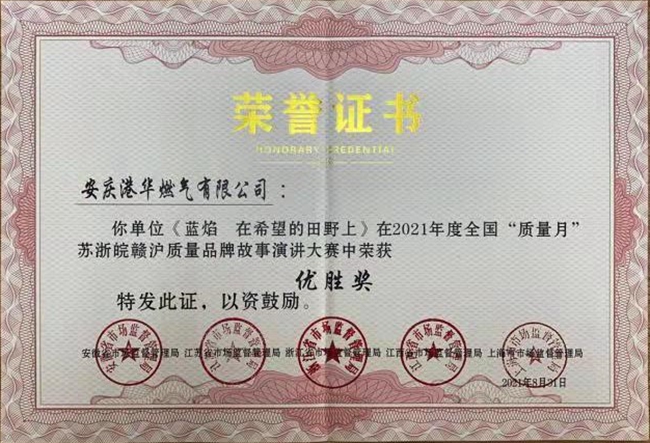日前,安慶港華燃?xì)膺x送演講視頻作品《藍(lán)焰 在希望的田野上》榮獲2021年全國“質(zhì)量月”蘇浙皖贛滬質(zhì)量品牌故事演講大賽優(yōu)勝獎。