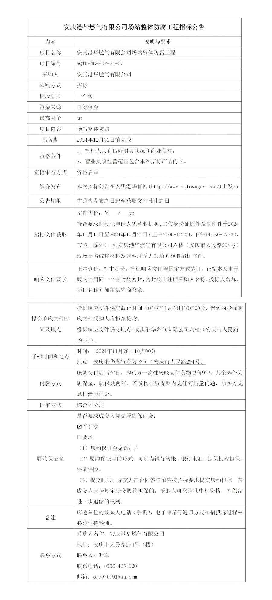 安慶港華燃?xì)庥邢薰緢稣菊w防腐工程招標(biāo)公告