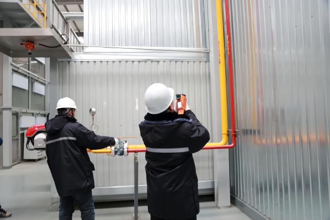 在生產車間內,服務組通過紅外測漏儀等探漏設備對管道運行情況進行細致檢查,逐一查看壓力表和燃氣報警器上的相關信息,確保每一處生產設備的燃氣使用安全。在檢查的同時,服務組還就廠區(qū)內燃氣設備設施的實際情況,與廠房相關部門負責人進行了現場宣講,并表示,無論遇到任何用能問題,都歡迎隨時來電反映,安慶港華將第一時間上門提供服務。